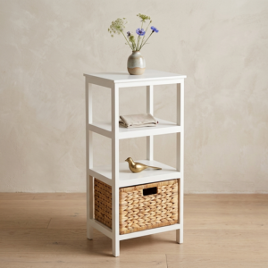 Tủ Gỗ 3 Ngăn – 1 Sọt Lục Bình – Trắng